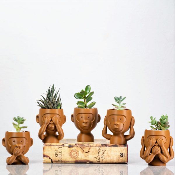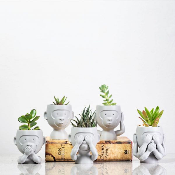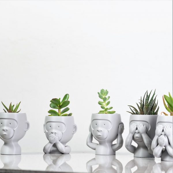 The 5 Wise Monkeys of Africa. Hear no Evil, See no Evil, Speak No Evil, Plain Monkey & The Absolute No Evil Monkey. Here to keep your living spaces looking trendy and teach us a few important life lessons along the way. A modern twist on the age old fable of the wise monkeys. We hope you enjoy them as much as we do! Includes a DIY Succulent kit including display stones, soil and succulents as pictured. *This is a 3D printed product and made from eco-friendly PLA.
